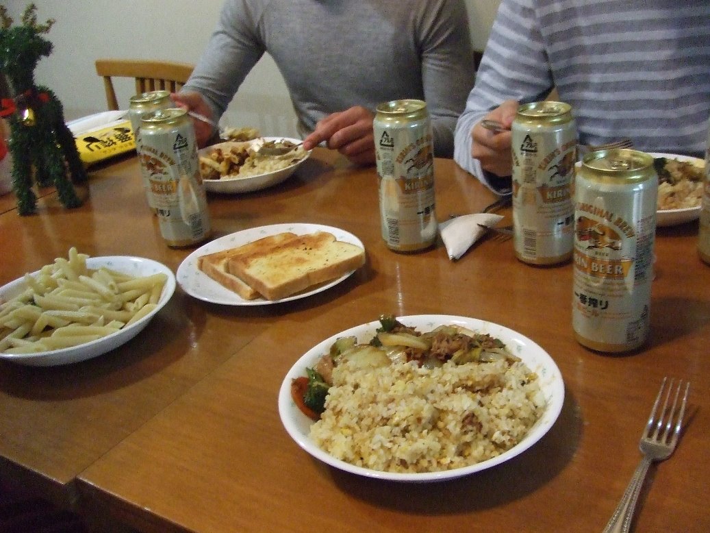 Chirstmas feast celebration! It was my first snowing christmas. Japanese beer is very tasteless. Just the way I like it.